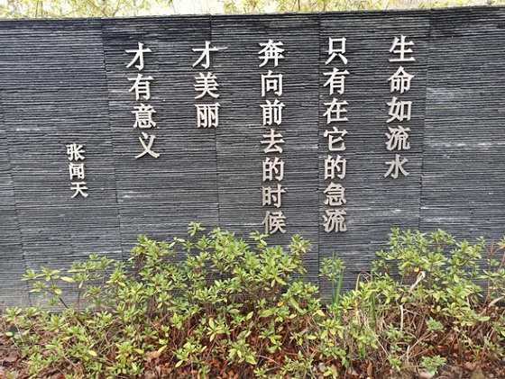 一走进故居大门,便见园前青砖道路、菜园、绿化,屋后还有小溪流水、竹林、桔树,园屋竹篱笆护臂环抱,房屋黛瓦白墙,浓郁的乡村气息和江南特色瞬间扑面而来。“生活的理想就是为了理想的生活”“生命如流水,只有在它的急流奔向前去的时候,才美丽,才有意义”,步行中,张闻天同志的名言映入眼帘,让人深受触动,未见其人,先闻其声,崇敬之情油然倍增。