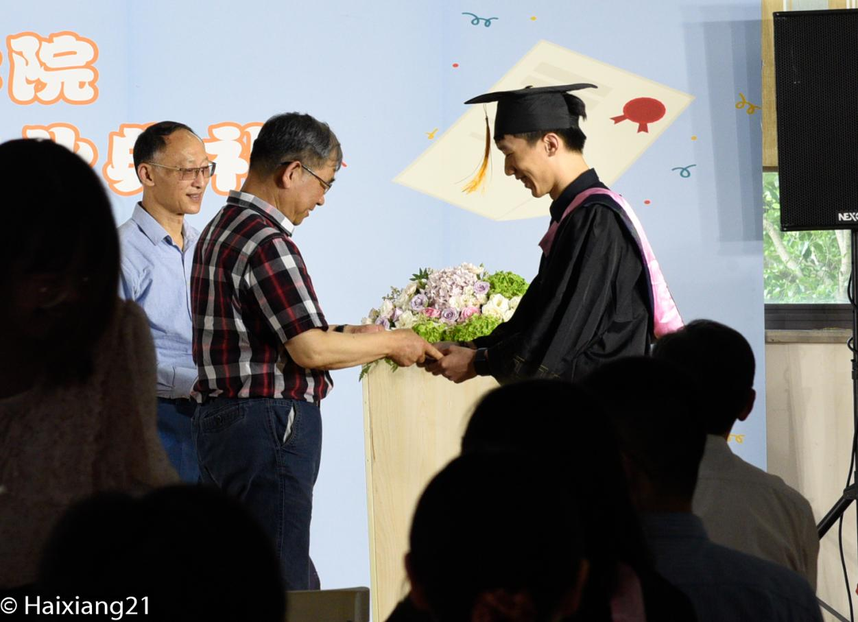俞光虹校长、王勇教授为陈浩乐颁发毕业证书和学位证书