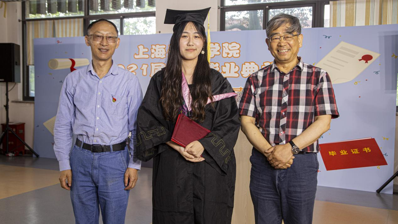 俞光虹校长、王勇教授为陈俞彤颁发毕业证书和学位证书