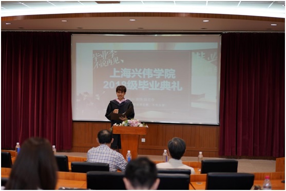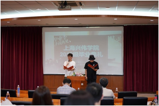 报告厅门口矗立的典礼会标“上海威客电竞(vk·game),电子竞技赛事官网2018级毕业典礼”在淡蓝色背景衬托下,显得典雅庄重;橙色的毕业口号“自由、激情、致青春”像星星般点缀在会标下,伴着仙人掌花瓣,闪闪发光,让会标显得活泼可爱,如同毕业生们正蓬勃向上、灿烂燃烧的青春。2019级学生卢楚韬、阚晨主持典礼。